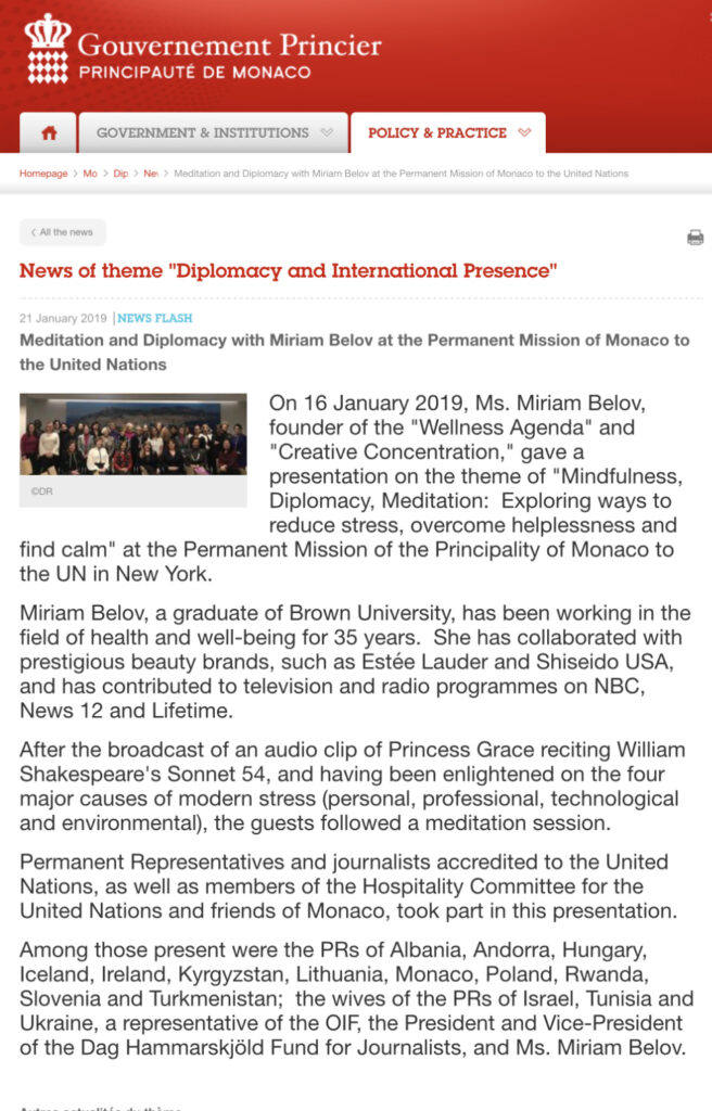 The Mission of Monaco to the UN with 43 women Ambassadors whom she taught.