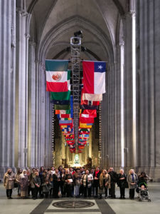 The Cathedral was decorated with flags from many countries in honor of the Memorial Day concert and so we all stood under them and smiled!