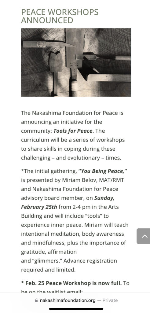 Nakashima has a huge influence in my life. From when we met until his passing, I cherished every moment spent in his presence. Fortunately, it continues for I am on the Nakashima Foundation for Peace Advisory board.